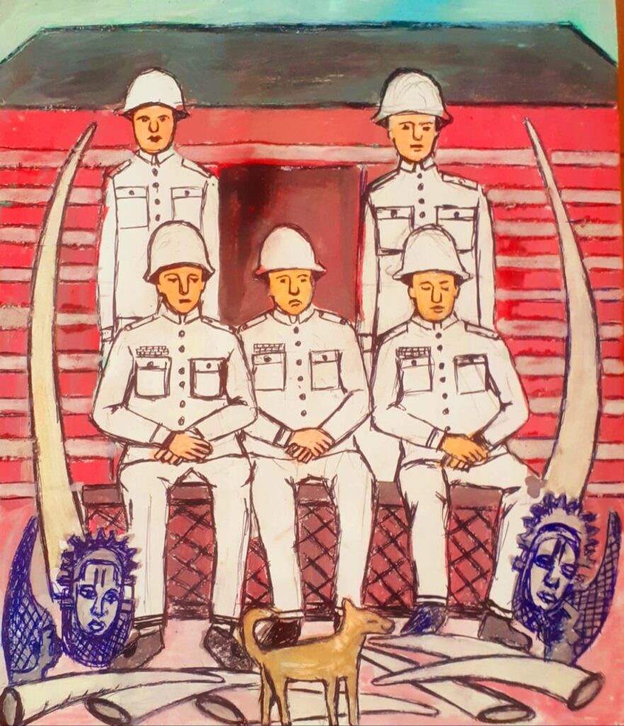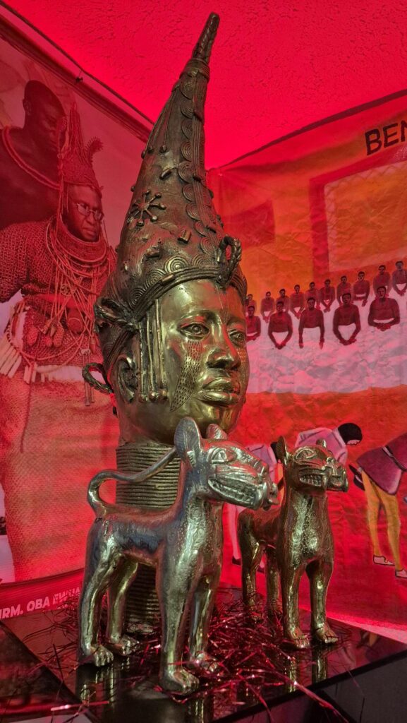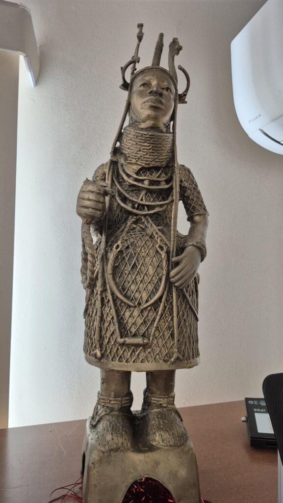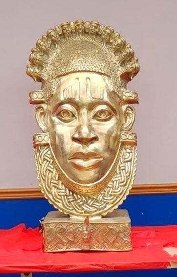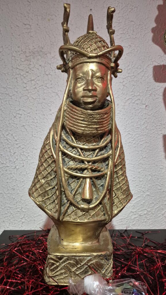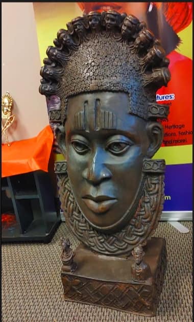 Queen Idia Mask (the mother of the king – 1500 AD)Portrait of the Oba (king) of BeninNative drum of the Benin/Edo peoplePortrait of the king of BeninPainting – Benin warriorsPortrait of the Queen Mother (Iyoba)Queen Idia bronze sculpture and leopardsPortrait of female performersGold color of Queen Idia MaskPictures of Edo Language Day guests, Shekere and a plaque portrait of the Oba of Benin and wivesPortrait of British colonial officers in Benin City in 1897History book authored by Nekpen ObasogieHistory book by Nekpen Obasogie